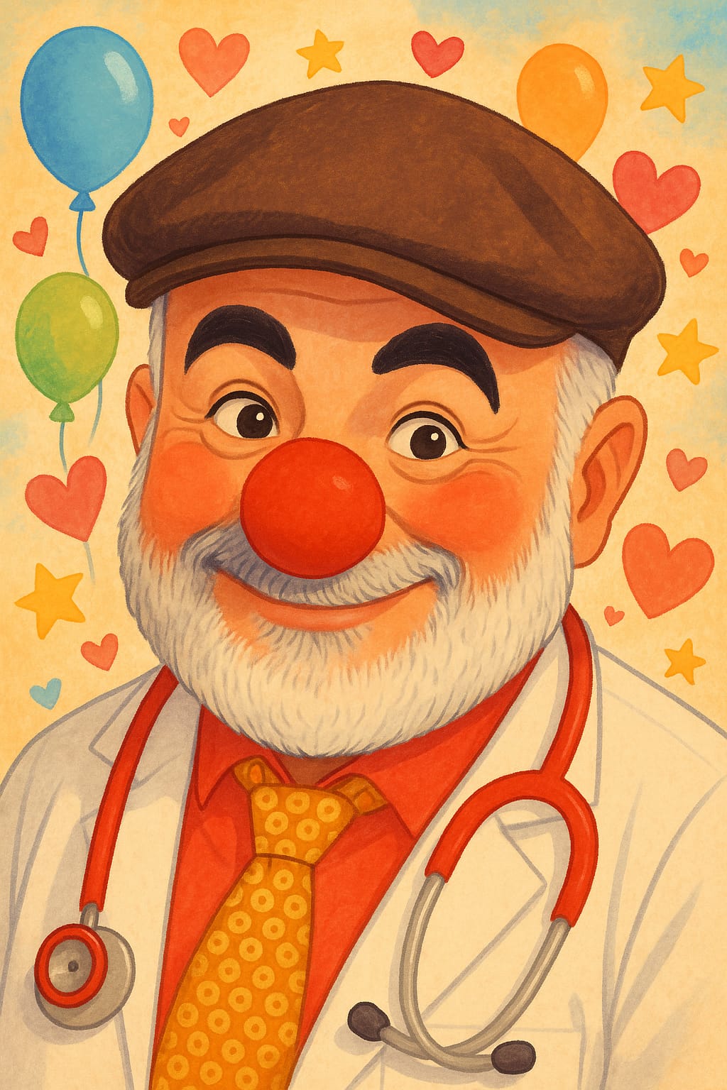 Bem-vindo ao universo do Dr. Bankete — um palhaço hospitalar que transforma dor em presença, e saudade em riso. Neste espaço, você conhecerá sua missão, suas histórias, sua música e sua forma única de espalhar afeto nos corredores do hospital.